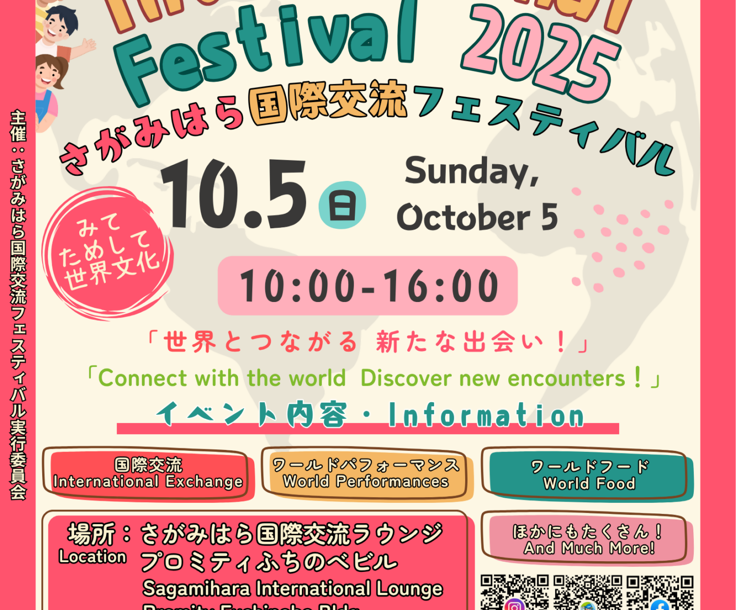 2025年10月5日(日)に開催されるさがみはら国際交流フェスティバルで、世界の遊びの出張博物館を出展します。世界各国のコマ、けんだま、ボードゲームなどを実際に遊ぶことができます。会場は、JR横浜線淵野辺駅南口から徒歩で約3分のプロミティふちのべビル1階のさがみはら国際交流ラウンジ。参加費無料・予約不要です。どうぞお気軽にあそびにお越しください。