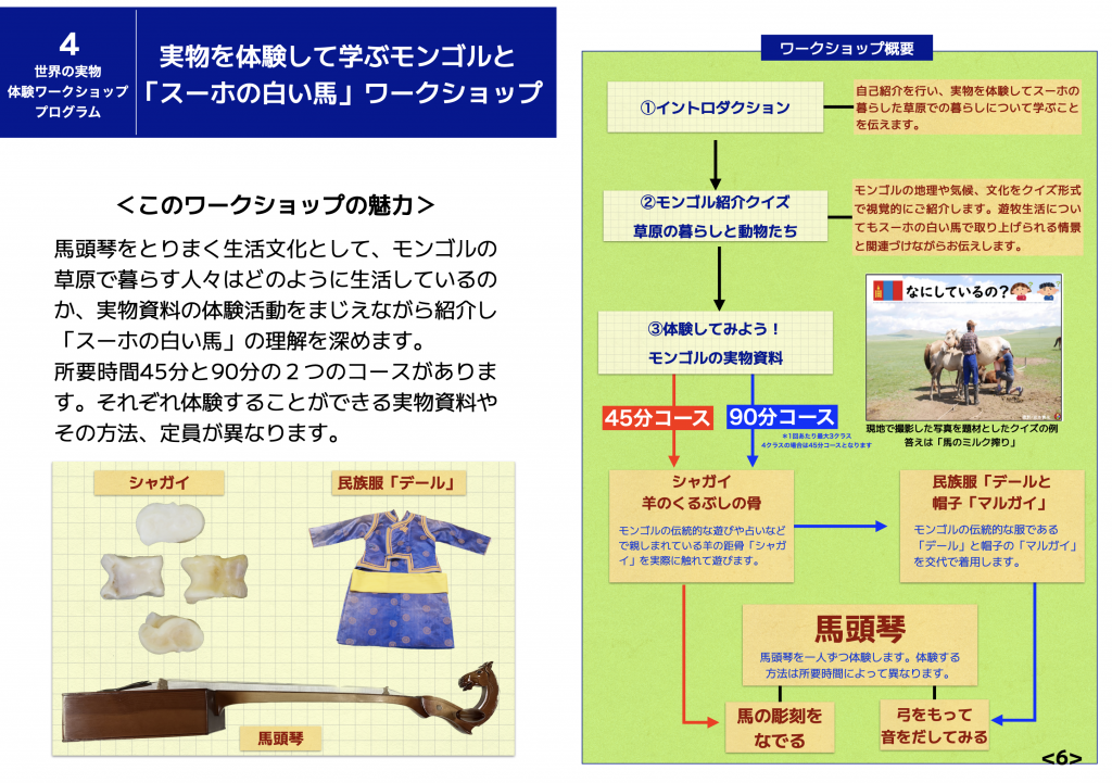 No.4 実物を体験して学ぶモンゴルと「スーホの白い馬」ワークショップ