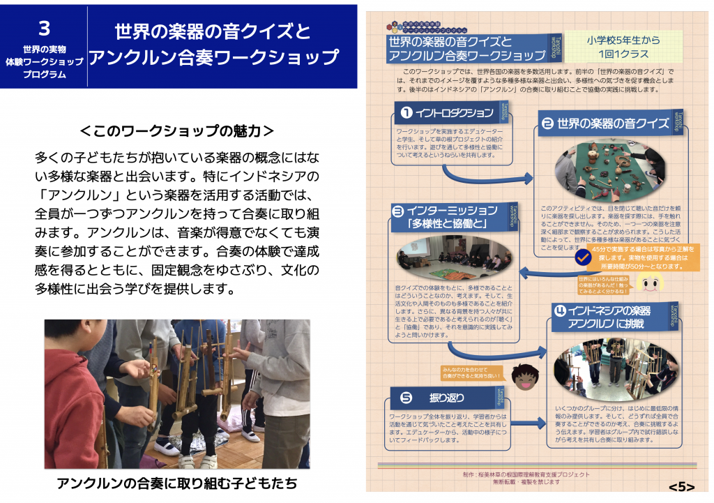 No.3 世界の楽器の音クイズとアンクルン合奏ワークショップ