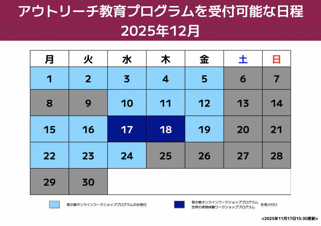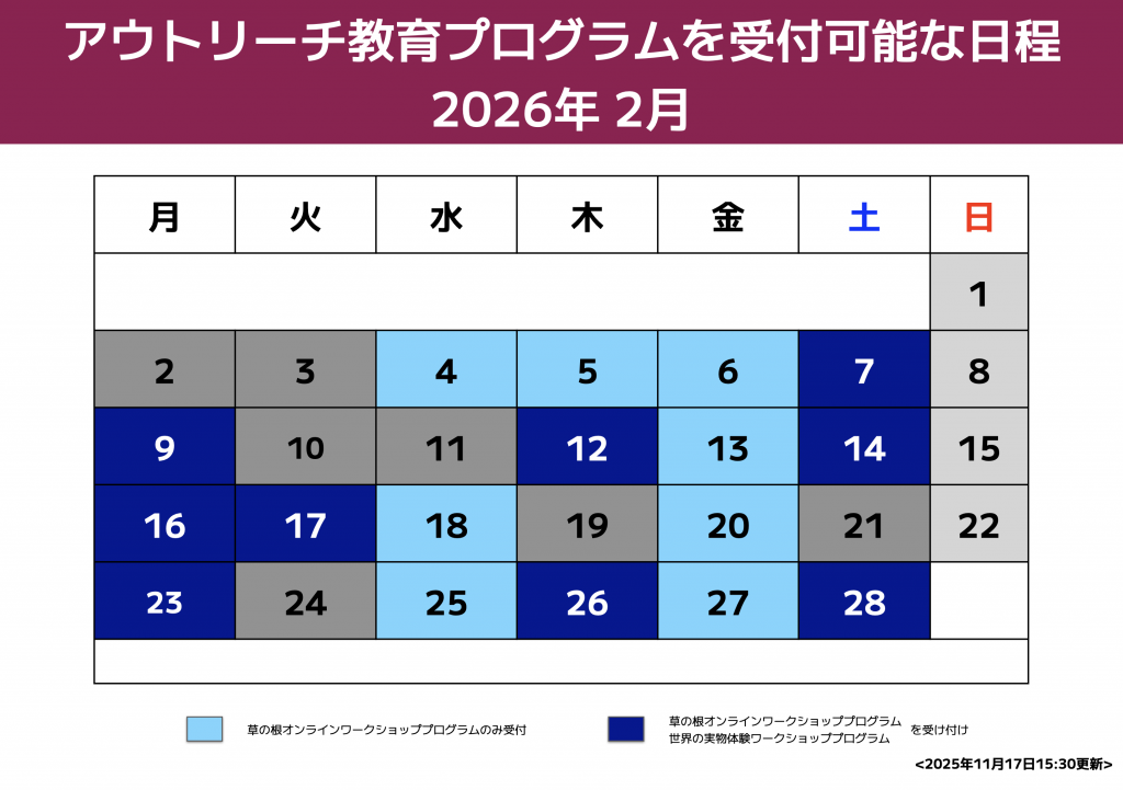 本プロジェクトのアウトリーチ教育プログラム別に受付可能な期間を設けます。