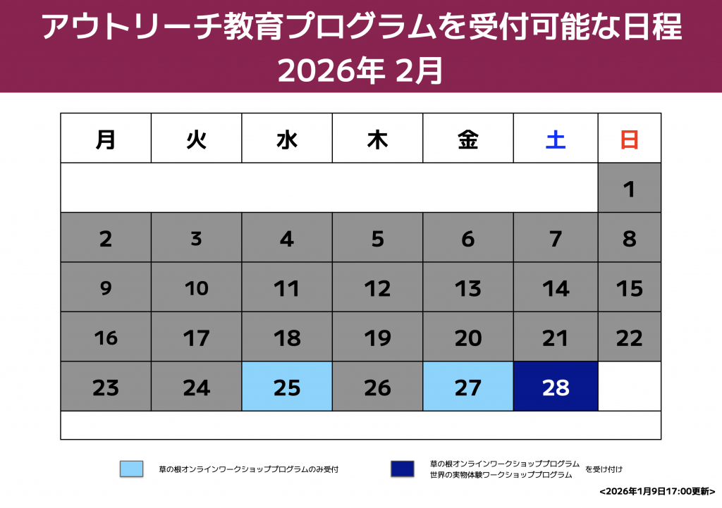 本プロジェクトのアウトリーチ教育プログラム別に受付可能な期間を設けます。
