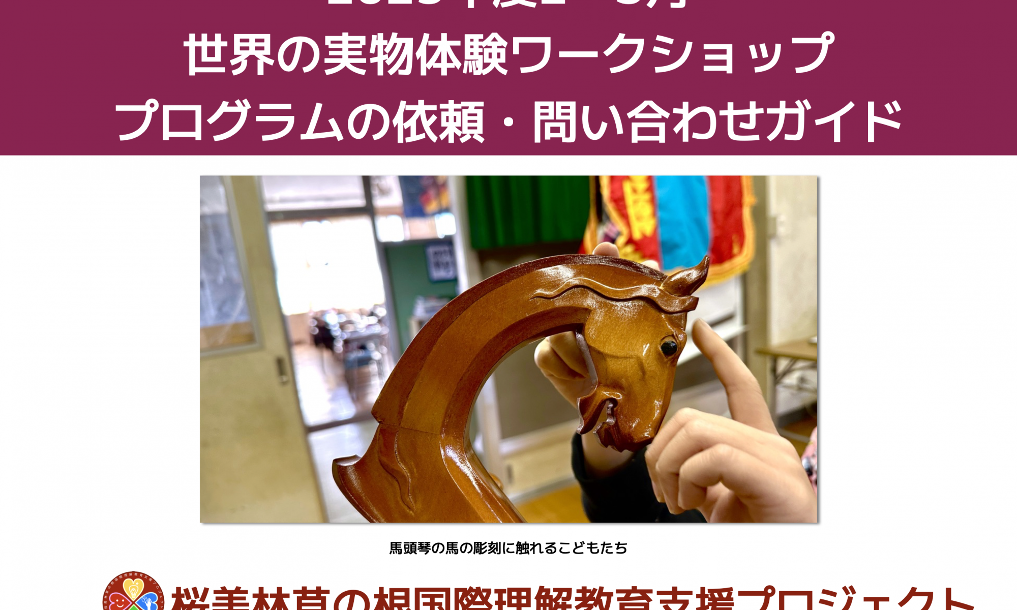 “【11/13更新】2026年月2〜3月のアウトリーチ教育プログラムの受付についてのご案内” の続きを読む桜美林草の根国際理解教育支援プロジェクトでは、国際理解・異文化理解教育を目的とした体験活動を中心とした各種の教育支援プログラムを学校だけでなく、社会教育、生涯学習等の多様な教育現場からのご依頼に基づき実施しています。